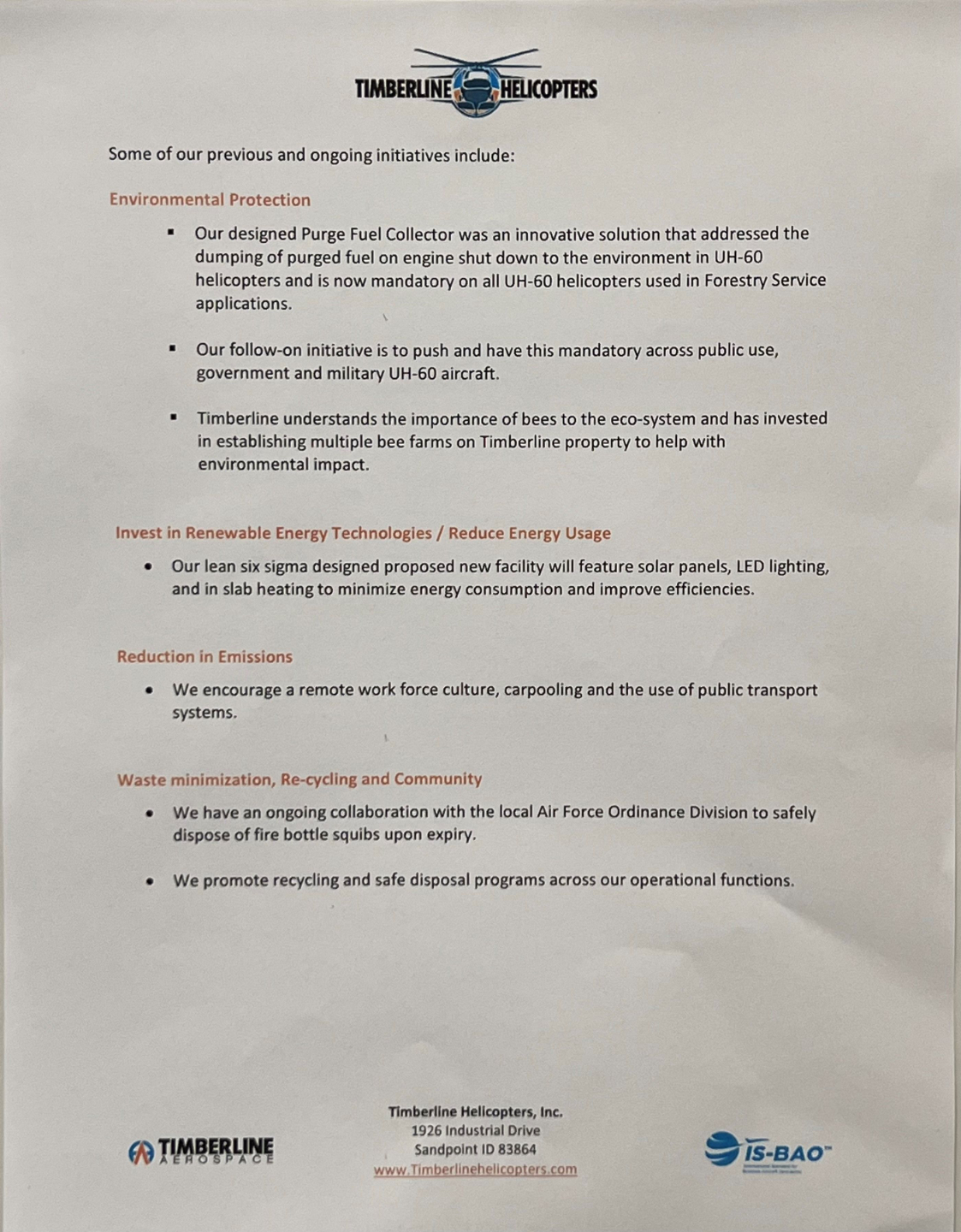 This ongoing commitment is a critical step in helping Timberline Helicopters improve our safety risk profile and operating effectiveness. Timberline Helicopters strives to maintain the highest levels of safety and is proud to be an IS-BAO participant.